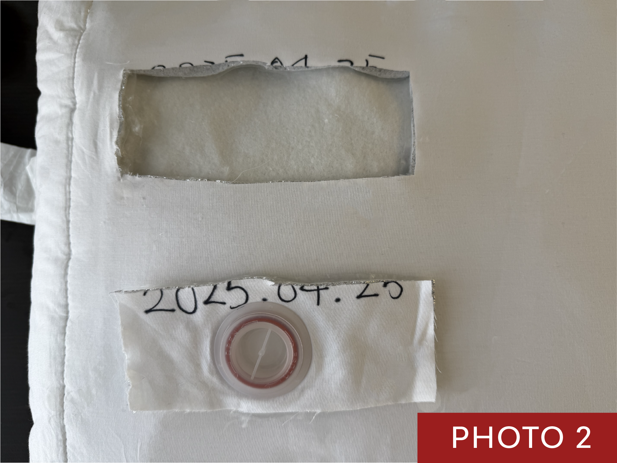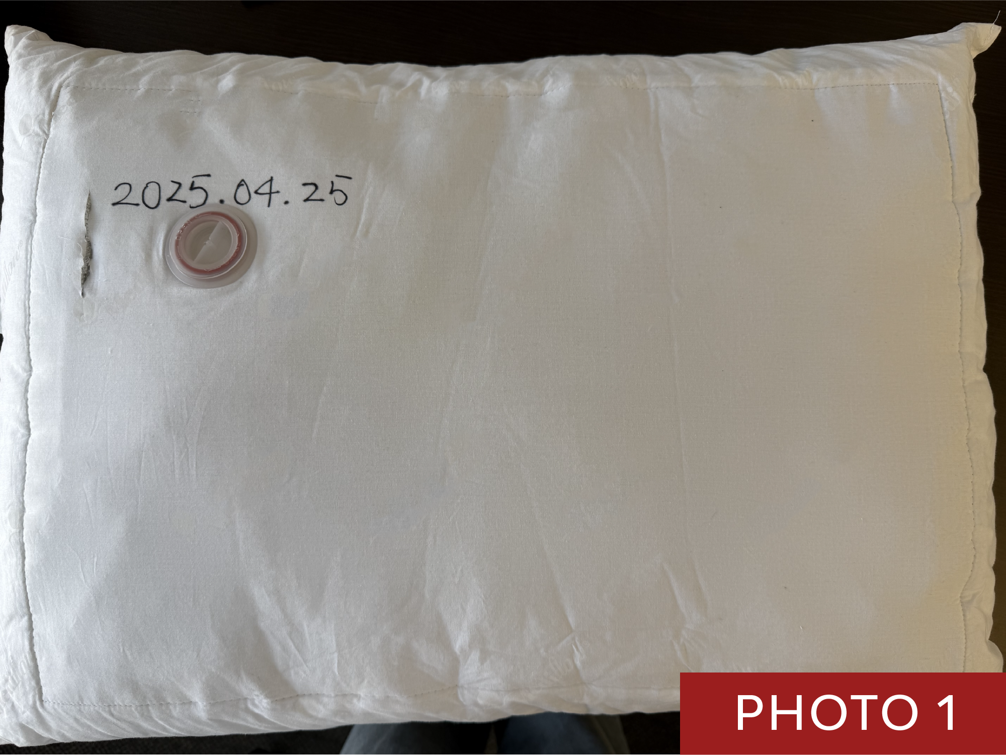 - Photo 1: Back of Pillow with Return Date Marked Date must be clearly visible and must touch the side of the cap.